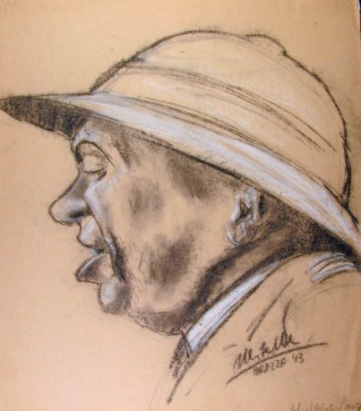 Ce dessin appartient à un ensemble de 46 portraits, pour la plupart des caricatures, dessinés par Louis Mitelberg sous le nom de Mitelle durant son séjour sur la base de Brazzaville comme opérateur-radio des FFL en 1943."