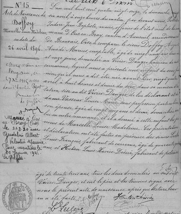 Naissance : 24 avril 1896 - Ons en Bray (60)