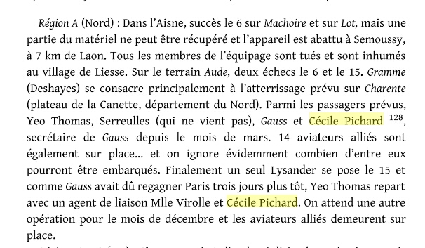 Cécile Eugénie Pichard épouse Chassain de Marcilly - son Livre ouvert ! "... Le 20 juillet 1944, il [Michel Pichard] est parachuté en Bretagne, pour prendre contact avec les SAS du 2ème Régiment de Chasseurs Parachutistes (2ème RCP) et préparer la mission Aloès d'aide à la résistance bretonne. Revenu de mission, il est parachuté de nouveau le 11 août 1944, dans le cadre de la mission Anis en Haute-Marne en qualité de Délégué Militaire Départemental avec sa soeur Cécile et le radio Maurice Roschbach. Sur place, il organise des parachutages et, en étroite collaboration avec le chef départemental FFI, arme près de 5 000 maquisards. ..."