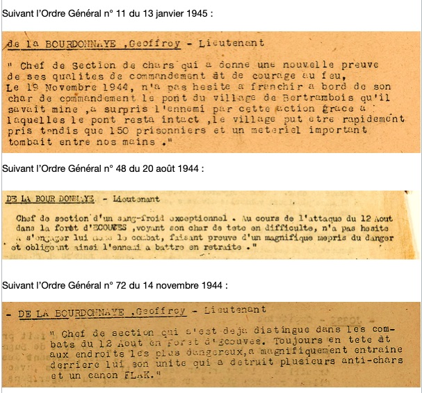 Geoffroy Esprit Roger Marie de la Bourdonnaye - son Livre ouvert ! Croix de Guerre, attribuées à :