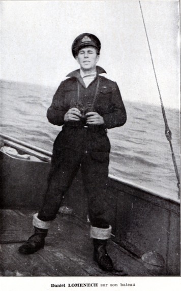 "... Le patron du langoustier de Léchiagat «L’Audacieux», Michel Bolloré, déjà membre du PC, accepta malgré les risques énormes encourus. Son équipage comprenait par ailleurs quelques sympathisants communistes comme Bastien Coïc ce qui pouvait lui faciliter la tâche. Après deux rendez-vous manqués, celui du 6 août 1942 fut le bon. Mais au lieu du sous-marin attendu, Oh! surprise, l’équipage vit arriver le «Mouscoul», malamock guilviniste évadé du port en Juin 40 avec les volontaires de la «France Libre». Daniel Lomenech du réseau Johny qui fut par ailleurs I’ancien chef des traversées clandestines accomplies par Raymond le Corre, etc…, commandait I’expédition..." Jacques Ghémard le jeudi 23 juin 2016 - Demander un contact Recherche sur cette contribution | |