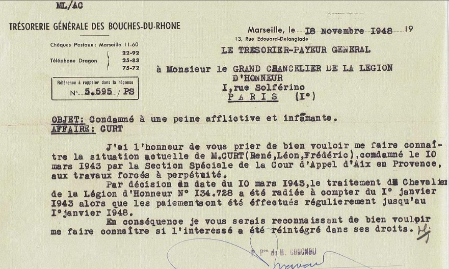 Dans son dossier pour la Légion d'Honneur