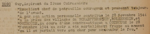 Extrait de "Souvenirs de la France libre" de Pierre Denis " J'eus la chance, dès que je me plongeai dans mon travail aussitôt après mon arrivée à Brazzaville, de trouver l'aide de Digo, auquel je serais bien ingrat de ne pas faire ici la place qu'il mérite. Digo était lui-même un nouveau venu en A. E. F. Directeur adjoint des Finances de l'Indochine, mis en jugement pour avoir donné des gages à la résistance et acquitté par miracle, il avait cependant, sur l'ordre de Vichy, été renvoyé en France. Par bonheur pour lui, le convoi qui le ramenait avec sa femme et ses enfants, avait été arrêté par une croisière anglaise, à la hauteur de Madagascar. Il avait été débarqué en Afrique du Sud, d'où il avait rejoint Brazzaville. Affecté à l'état-major de Sicé, on lui avait confié la critique du budget d'Éboué. Quand j'allais chez lui, le spectacle de sa famille au complet, parfaitement unie, épargnée jusque-là par la guerre, me donnait un peu de jalousie, et me ramenait l'esprit à ma propre solitude.