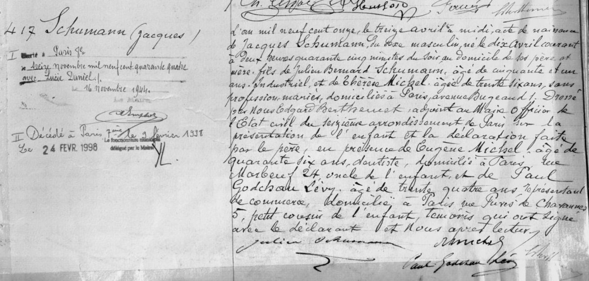Décès à 86 ans - 9 février 1998 - Paris 7eFrère de Jeanne Schumann