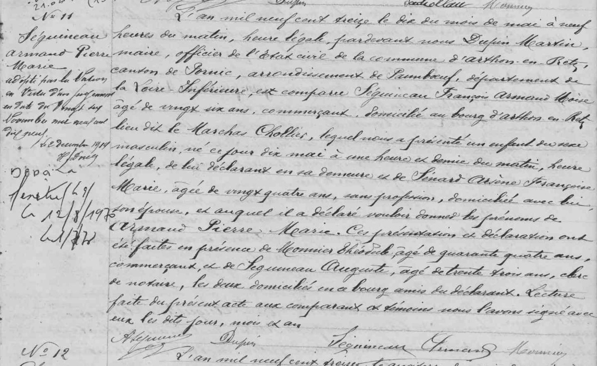 Naissance : 10 mai 1913 - Arthon-en-Retz (44)