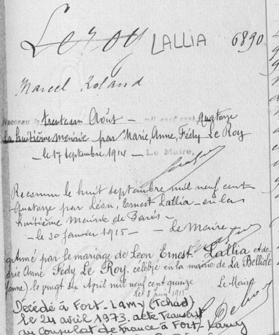 Marcel Roland Lallia né Leroy - son Livre ouvert !
