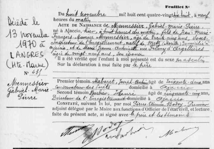 - A Ajaccio, chef-lieu de la Corse, ville qui s'honore d'avoir vu naître Napoléon ...