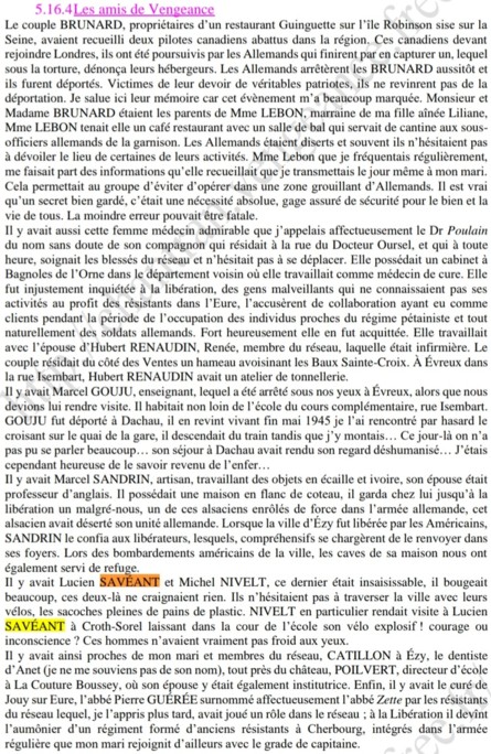 "... Le rapport d'évasion du Lt Pascal nous apprend qu'il a été pris en charge par un instituteur ("le Petit Prof") et qu'il s'est retrouvé chez Hubert et Renée RENAUDIN à Arnières-sur-Iton en Eure (Les Tuilleries), Renée étant infirmière. Ce sont donc les hébergeurs que cite Lindsay. Pascal mentionne également une Mme MAURY, une femme-médecin le Dr Suzanne HUET du 17 Rue du Dr Ousel à Évreux, un médecin Dr POULAIN, un Robert PHILIPPE et sa femme Hélène (il s’agit de Robert et Hélène PHILIPPE, café-tabac des Tribunaux, au 29 Rue Joséphine, Evreux) et enfin, la sœur d'Hubert RENAUDIN.