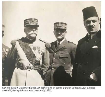 Mémoires de guerre , Charles de Gaulle (L'Appel) " Il lui fallait, pour commencer, organiser du haut en bas la représentation française que le départ de la plupart des fonctionnaires « d'autorité » et de la majeure partie des officiers de renseignements avait, soudain et partout, réduite à presque rien. Catroux prit auprès de lui, comme secrétaire général, Paul Lepissié, qui nous était venu de Bangkok où il était ministre de France. Il délégua le général Collet et M. Pierre Bart, respectivement auprès des Gouvernements syrien et libanais. En même temps, MM. David, puis Fauquenot, à Alep, de Montj ou à Tripoli, Dumarçay à Saïda, le gouverneur Schoefîler, puis le général Monclar, aux Alaouites, les colonels : Brosset en Djezireh, des Essars à Homs, Oliva-Roget au Djebel Druze, allèrent assurer, dans chacune des régions, notre présence et notre influence." laurent le mercredi 02 septembre 2009 - Demander un contact Recherche sur cette contribution | |
